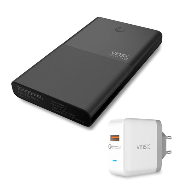 Vinsic 28000mAh Power Bank 18650 with QC 3.0 2.4A Dual USB Dual Way Quick Charger for iPhone X iPhone 8 8 Plus Xiaomi Samsung S7